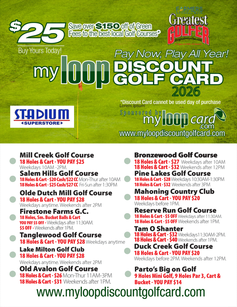 Take a look at the Golf Courses participating in the 2026 “LOOP Card. Click here